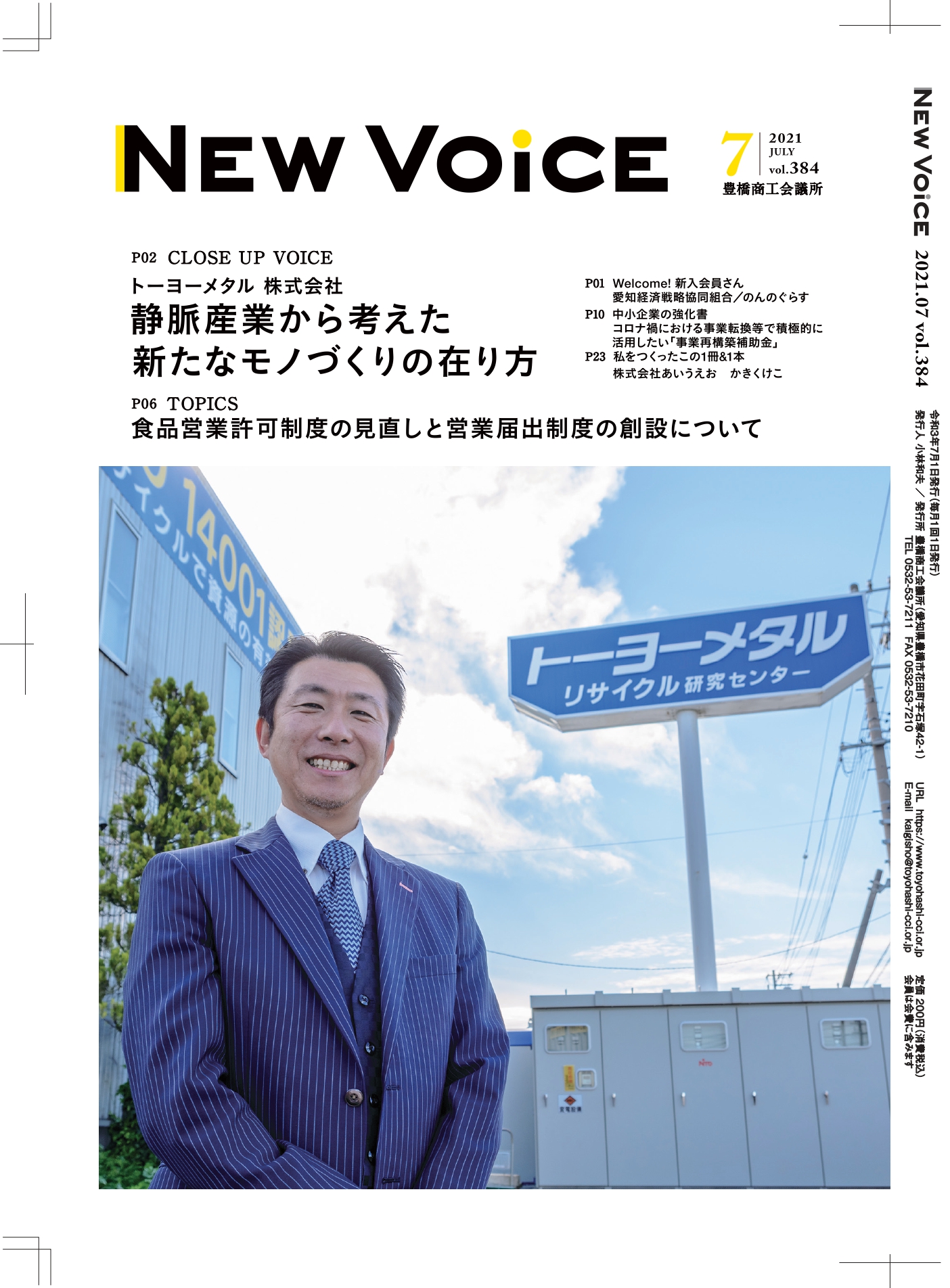 豊橋商工会議所が発行する会報誌「New Voice」の7月号に 巻頭カラーとして掲載されました。